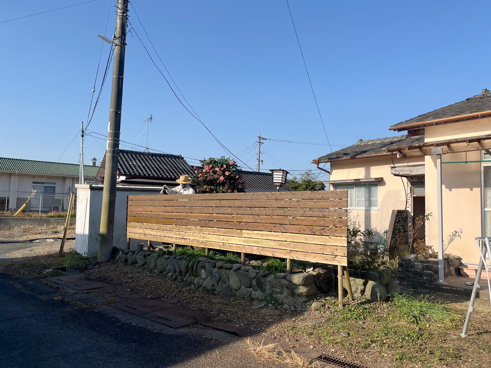 完了です。植木がなくなりスッキリしましたね。丈夫な板塀も出来、ご満足頂けました。